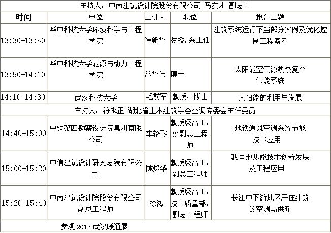 時 間:2017年3月29日 12:00-16:00 地 點:武漢國際博覽中心B2-2會議室(100人) 組織單位:湖北省制冷學會、武漢制冷學會、武漢風向標會展服務有限公司 參會人員:建設管理機構、建設、設計、施工、監理單位以及相關單位。